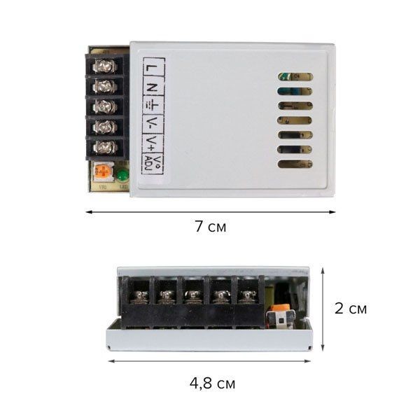 Блок питания в пластиковом корпусе - небольшой по размеру, легкий и влагозащищенный.