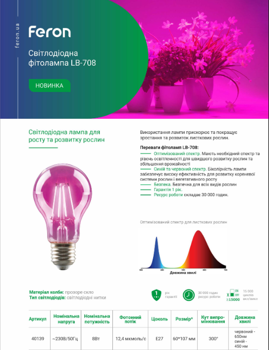 Фито лампа LB 708 8W FERON