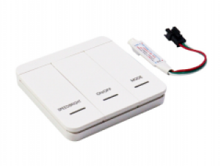 Контроллер LEDTech RUN RF- панель 3 клавиши - предназначен для создания светодинамических эффектов и управления яркостью/скоростью адресных одноцветных (Single color) светодиодных лент с чипами WS2811, ТМ1903, GS8208/2303. Оснащен дистанционной панелью управления с 3 клавишами - скорость/яркость, вкл/выкл и переключение режимов. Использование панели возможно в радиусе действия 15 метров. К контроллеру можно подключить до 2048 пикселей. Сама сенсорная панель работает от батарейки (не идет в комплекте) и соединяется с контроллером по радио сигналу, соответственно не требует проводки и ее можно разместить в любом месте (стена, полка, в шкафу)