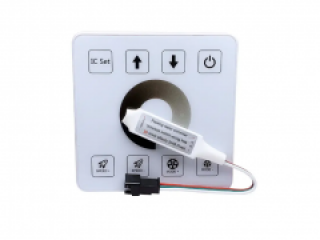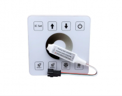 Контроллер LEDTech RUN RF-Touch panel - предназначен для создания светодинамических эффектов и управления яркостью/скоростью адресных одноцветных (Single color) светодиодных лент с чипами WS2811, ТМ1903, GS8208/2303. Оснащен дистанционной панелью управления с 8 сенсорными кнопками и кругом управления яркостью, использование панели возможно в радиусе действия 15 метров. К контроллеру можно подключить до 2048 пикселей. Сама сенсорная панель работает от батарейки (не идет в комплекте) и соединяется с контроллером по радио сигналу, соответственно не требует проводки и ее можно разместить в любом месте (стена, полка, в шкафу)