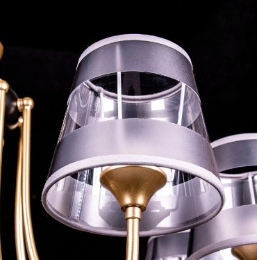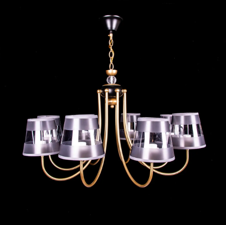 Классическая люстра с абажурами. Цвет основания: бронза. Цвет абажуров: прозрачный +серый... 8 патронов Е27. Люстра исполнена в стиле "арт- деко", она будет смотреться на высоких и средней высоты потолках.