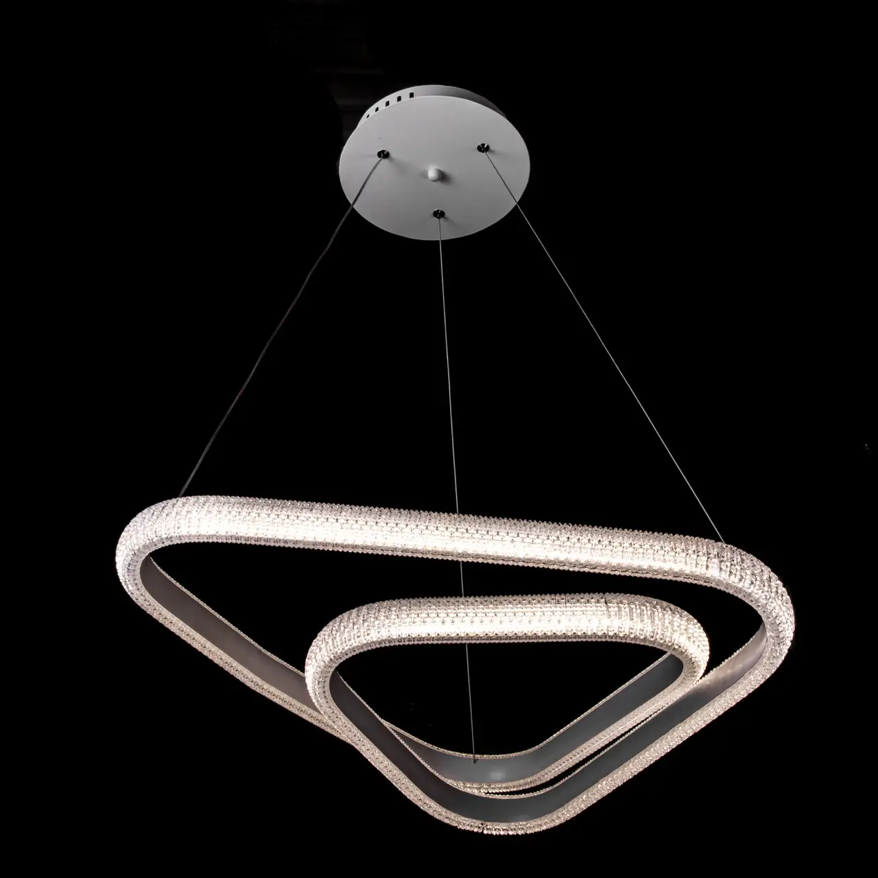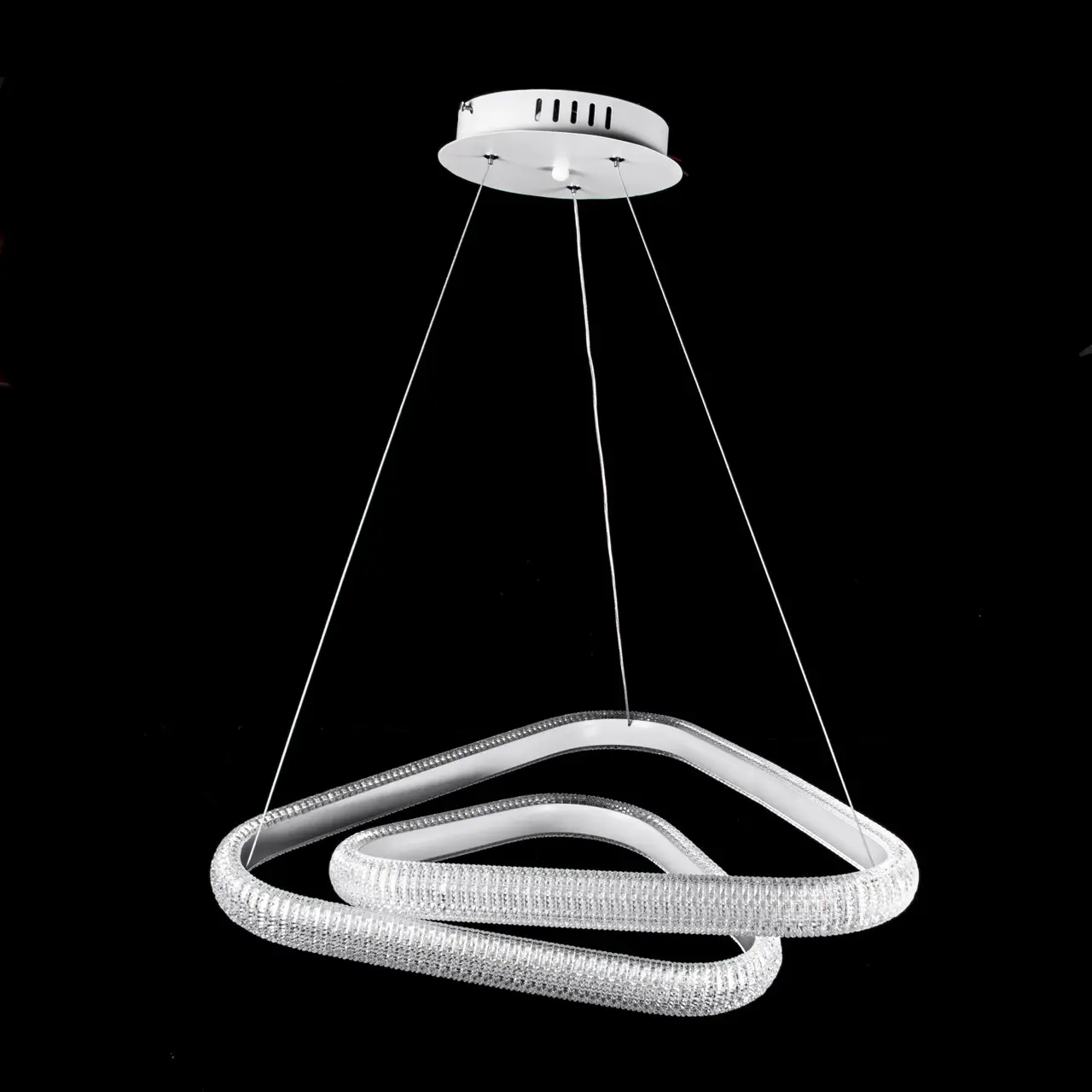 Светодиодная (LED) люстра Прометей на тросах с регулируемой высотой. Цвет рамы – белый. Режимы свечения – тёплый белый (3000 К) / нейтральный белый (6500 К).