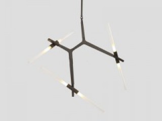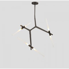 Черная люстра в индастриал стиле со стеклянными матовыми плафонами для внутреннего освещения. Регулируемая форма и размер корпуса.