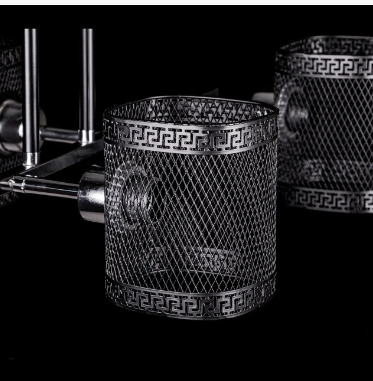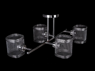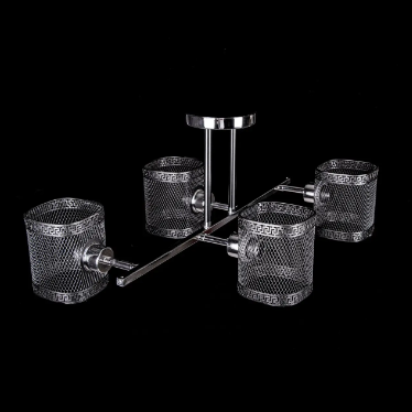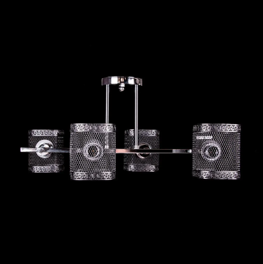 Современная потолочная люстра в стиле лофт на 4 лампочек прекрасно подойдет под стильный и современный интерьер. Каркас люстры окрашен в цвет хром с черным элементам, которые создают контраст на фоне основного цвета. Люстра подойдет для помещений со средними и высокими потолками. Лаконичный дизайн и элементы декора повторяющие формы плафона подчеркнут интерьер помещения. Плафоны данной модели произведены из метала. Патроны типа Е27 позволяют использовать большинство из предоставленных на рынке лампочек. Подойдут лампочки размера G45
