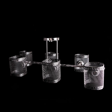 Современная потолочная люстра в стиле лофт на 6 лампочек прекрасно подойдет под стильный и современный интерьер. Каркас люстры окрашен в цвет хром с черным элементам, которые создают контраст на фоне основного цвета. Люстра подойдет для помещений со средними и высокими потолками. Лаконичный дизайн и элементы декора повторяющие формы плафона подчеркнут интерьер помещения. Плафоны данной модели произведены из метала. Патроны типа Е27 позволяют использовать большинство из предоставленных на рынке лампочек. Подойдут лампочки размера G45.