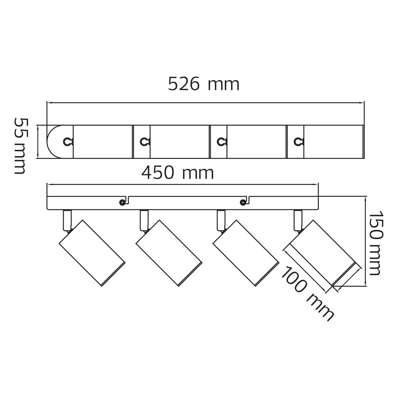 Габаритные размеры: высота - 150 мм , ширина - 55 мм, длина - 526 мм