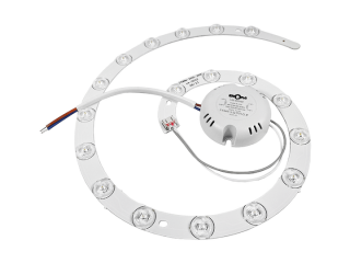 Светодиодный модуль разработан специально для использования в конструкциях круглых светильников. Он полностью подготовлен к установке, что позволяет самостоятельно осуществить ремонт светового прибора в короткие сроки. Модуль может быть закреплен с помощью шурупов или магнитов, являющихся простейшим способом установки. Конструкция модуля базируется на долговечных кристаллах, излучающих белый свет и обеспечивающих широкий угол рассеяния света в 180 градусов. Модуль питается от стандартной бытовой электросети напряжением 220 Вольт. Степень влагозащиты IP20 делает ее пригодной для использования в конструкциях LED светильников, предназначенных для эксплуатации в сухих помещениях.