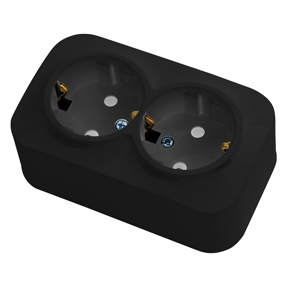 Розетка двойная с заземлением черная EVA