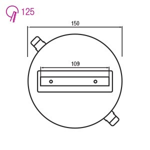 Универсальный врезной однофазный трек- шинопровод, для подключения одного трекового светильника. Диаметр монтажного отверстия – 125мм. Размер трека для подключения – 109мм.