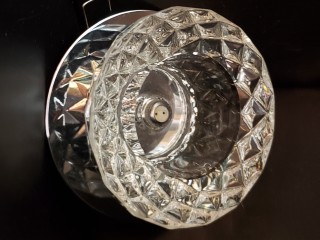 Каркас выполнен из металла и прекрасно сочетается с плафоном из хрусталя. Модель в стиле хай-тек и великолепно подойдет к интерьерам аналогичных направлений.