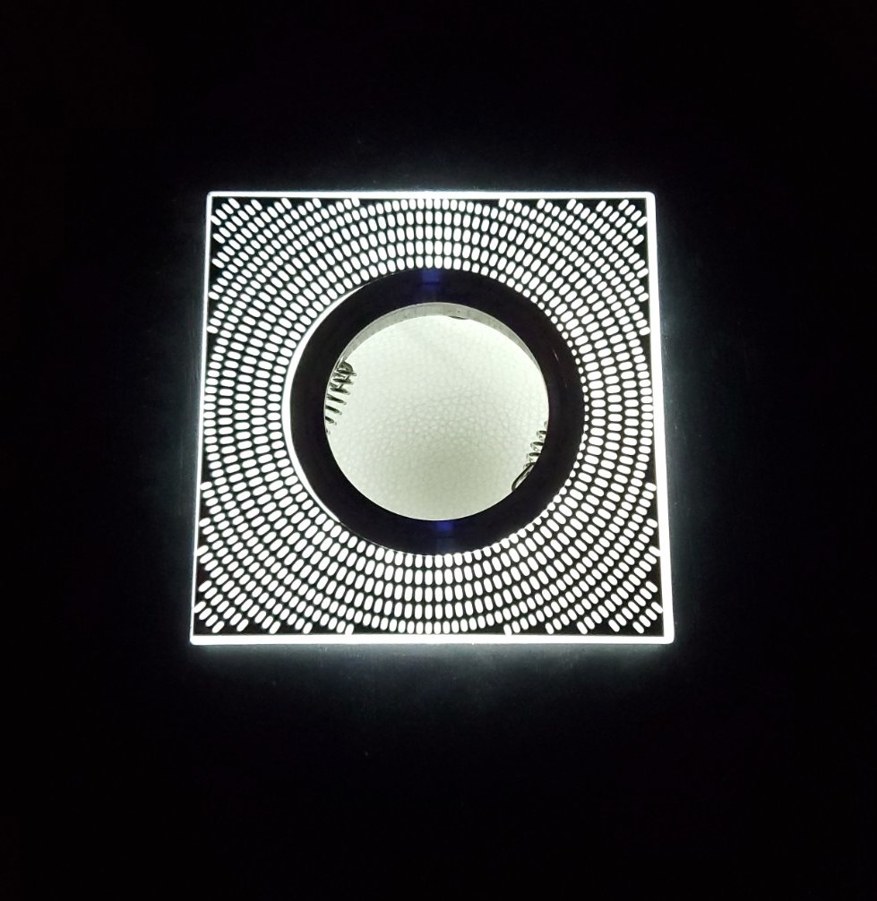 Точечный встраиваемый светильник выполнен в стиле хай-тек. Подойдет для освещения любого современного интерьера. Светильник изготовлен из прочной штампованной стали и акрила. Высокая степень пыле-влагозащиты позволяет устанавливать его в санузлах.