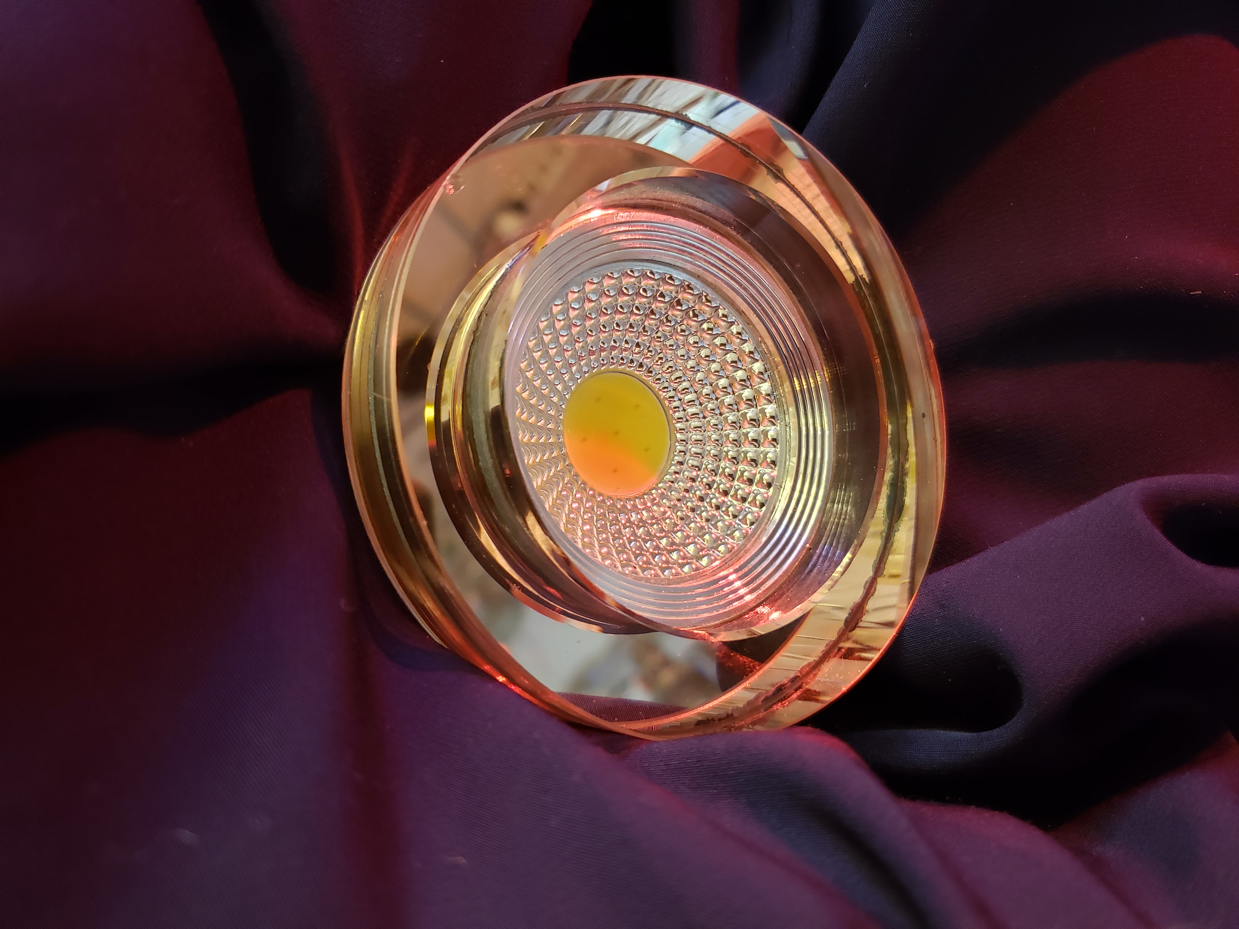 Изюминкой модели является сочетание нежного персикового цвета и зеркального покрытия. Одного такого светильника достаточно для создания комфортной обстановки на площади 2 кв.м. Использование светодиодных ламп позволит сэкономить расходы на электроэнергию.