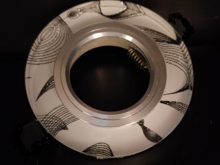 Модель выделяется интересным черно-белым рисунком с вкраплением серебряных нитей. Одного такого светильника достаточно для создания комфортной обстановки на площади 2 кв.м. Использование светодиодных ламп позволит сэкономить расходы на электроэнергию.