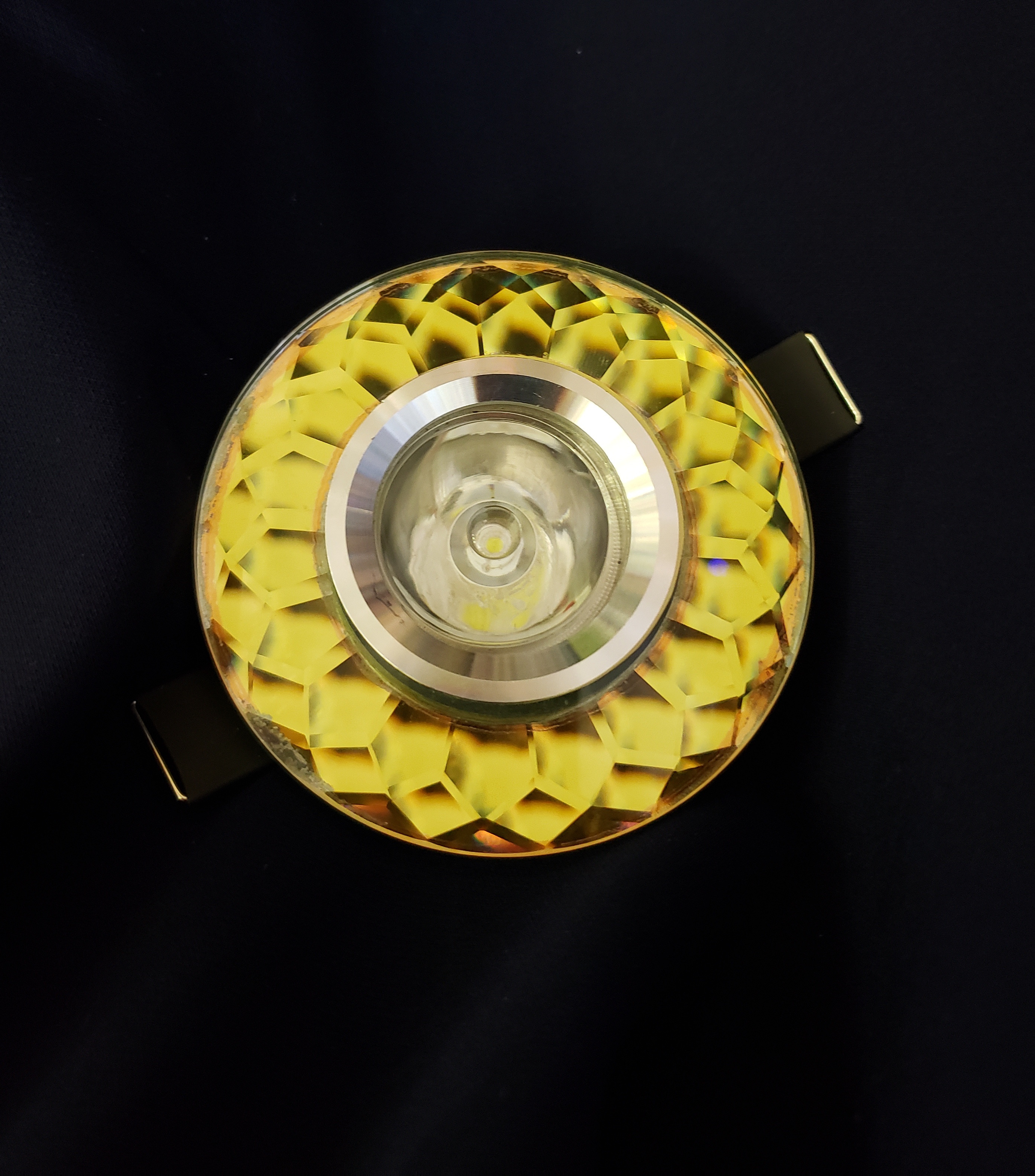 Изюминкой модели является сочетание свежего лимонного цвета и граненого зеркального покрытия. Одного такого светильника достаточно для создания комфортной обстановки на площади 2 кв.м. Использование светодиодных ламп позволит сэкономить расходы на электроэнергию. В светильник встроена светодиодная лампочка мощностью 3W.
