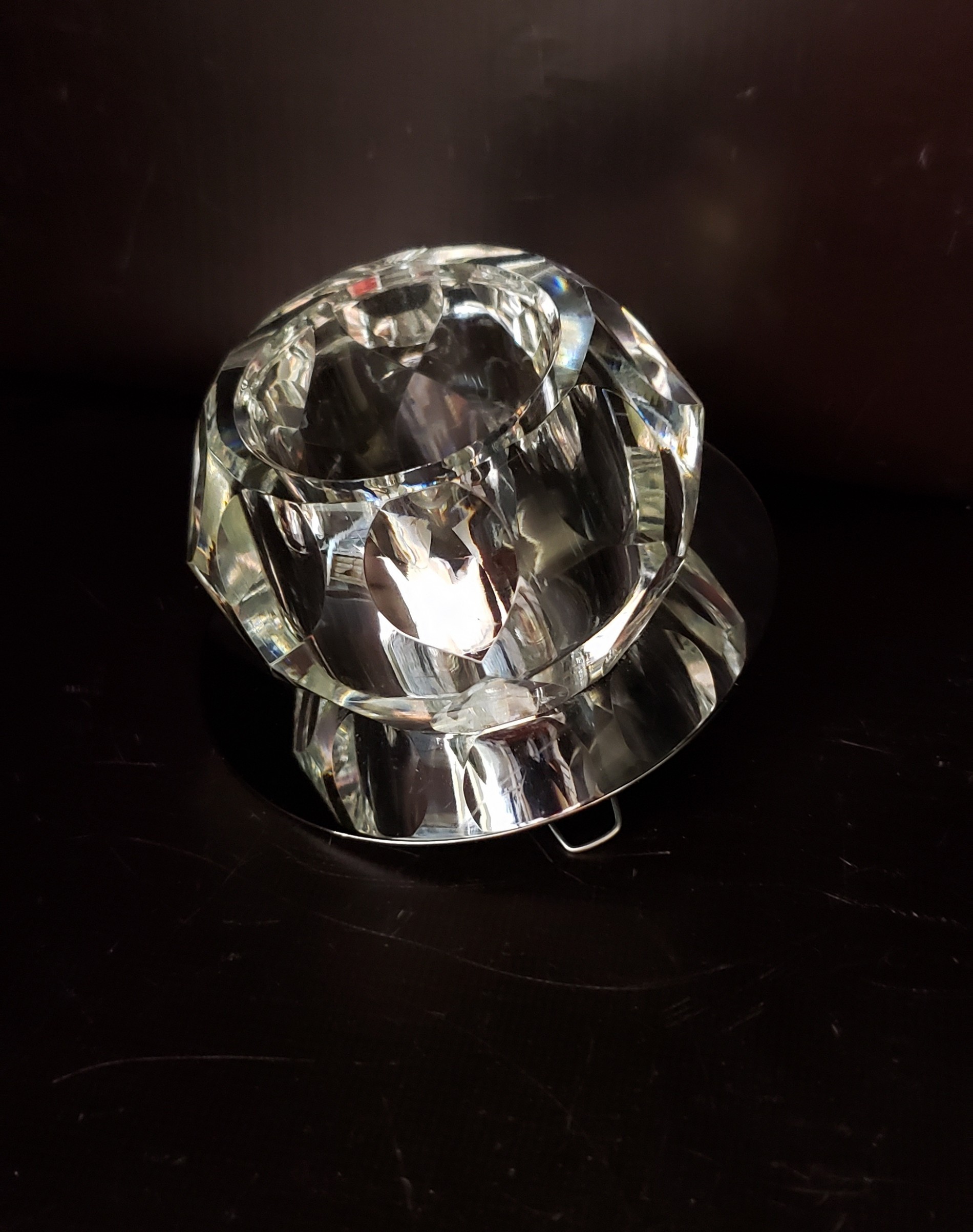 Завораживающие встраиваемые точечные стеклянные светильники, неизменно предпочитаемые при создании дорогих, эклектичных интерьеров с яркой индивидуальностью. Прекрасно освещают помещение, создавая неповторимый рисунок на потолке, за счет преломления и отражения света многочисленными гранями. Придают неповторимый стиль Вашему интерьеру, подходят для экспериментов с декоративными решениями освещения. Модель в стиле хай-тек великолепно подойдет к интерьерам аналогичных направлений.